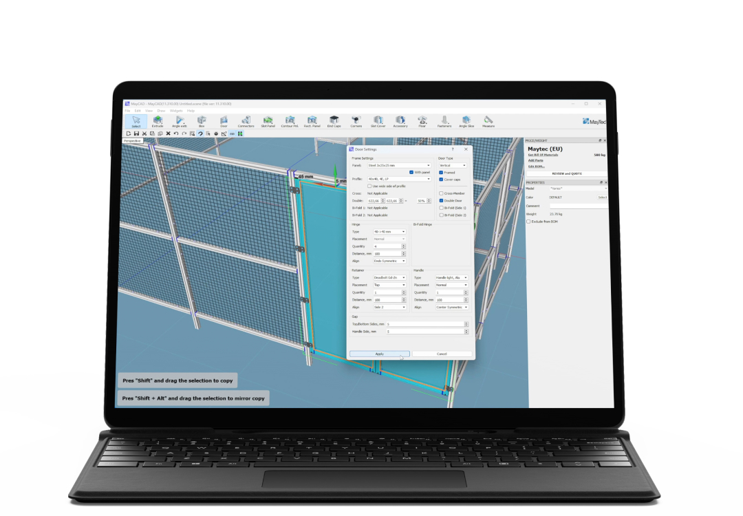 Often copied, never duplicated! MayCad is our own proprietary design software and is only available directly from MayTec or one of our authorized partners. Our MayCad software enables the user to simply and intuitively create 3D or 2D drawings, utilizing MayTec products.